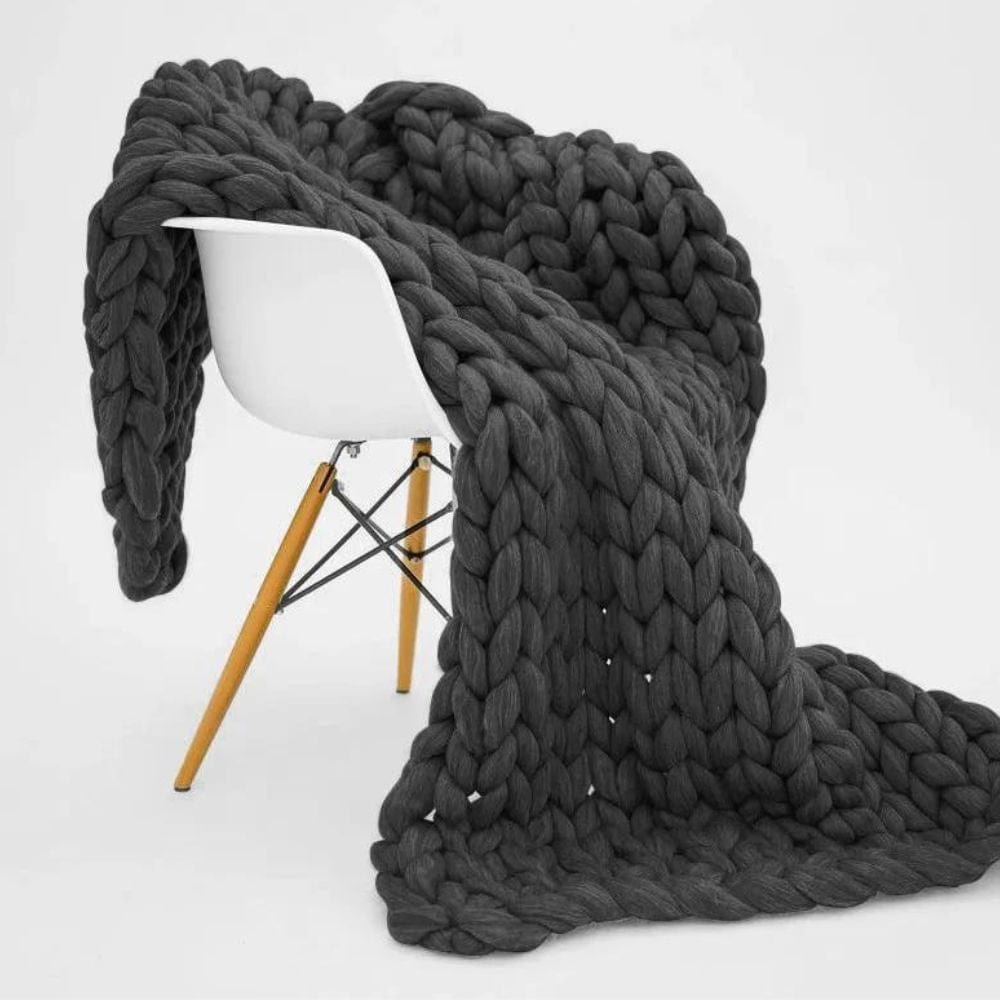 Gris Foncé / 100 x 120 cm Plaid Grosse Maille Gris Anthracite